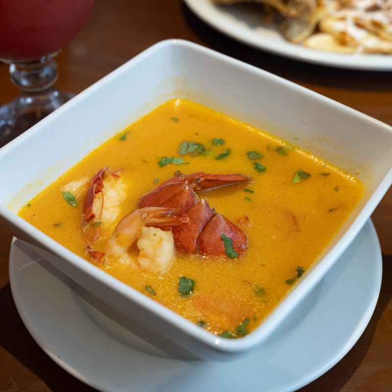 Lobster tail & shrimp with zucchini, potatoes, carrots, and sweet plantains in a coconut milk broth served with a side of rice or tortillas.